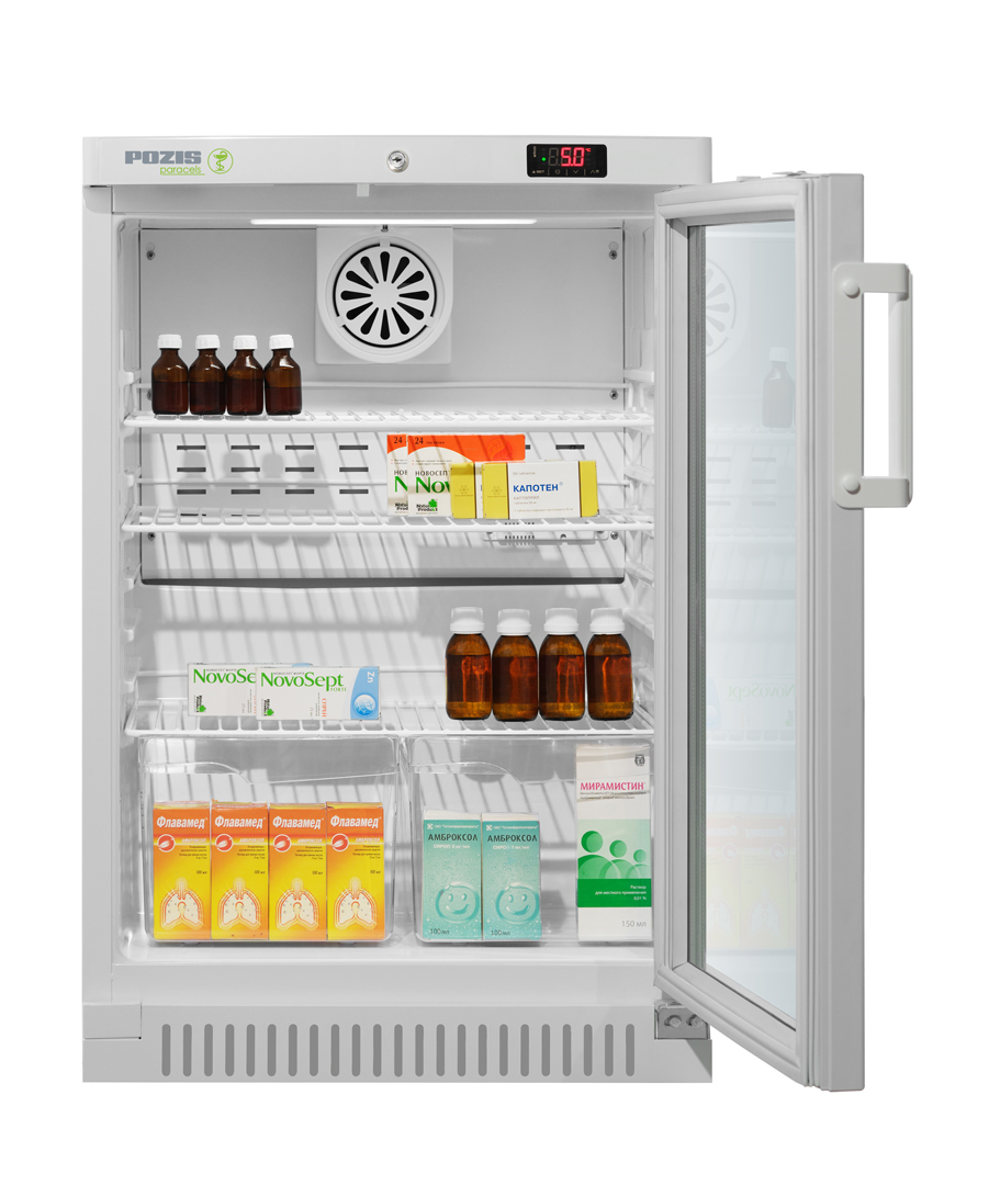 Микропроцессорный регулятор температуры со сверхчувствительным датчиком температуры; система принудительной циркуляции воздуха; дверь стеклянная с замком; автоматическое поддержание температуры в камере; сигнализация при отклонении температуры от заданной; отображение температуры на табло панели управления; отключение вентилятора при открывании двери, пластиковые контейнеры для фарм.препаратов — 2 шт. Предназначен для хранения лекарственных препаратов при температуре от +2°C до +15°C в помещениях в помещениях с температурой от +10°C до +35°C (клиники, больницы, аптеки, лаборатории, ветеринарные учреждения).