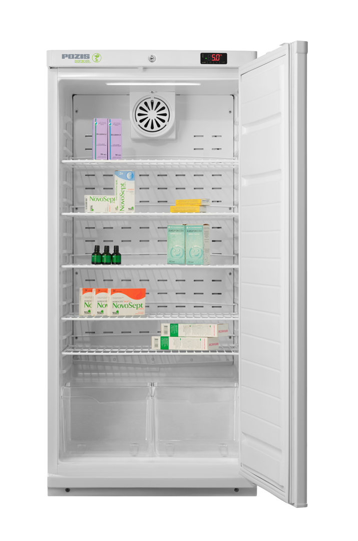 Микропроцессорный регулятор температуры со сверхчувствительным датчиком температуры; система принудительной циркуляции воздуха; металлическая дверь с замком; автоматическое поддержание температуры в камере; сигнализация при отклонении температуры от заданной; отображение температуры на табло панели управления; отключение вентилятора при открывании двери, пластиковые контейнеры для фарм.препаратов — 2 шт.