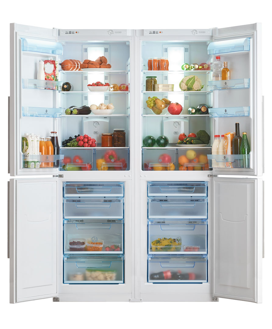 Конструкция бытового холодильника позволяет исполнять его в виде конструкции по типу Side-by-Side, представляющей собой систему из двух независимых аппаратов, которые имеют общий дизайн и соединяются в единую конструкцию на месте.